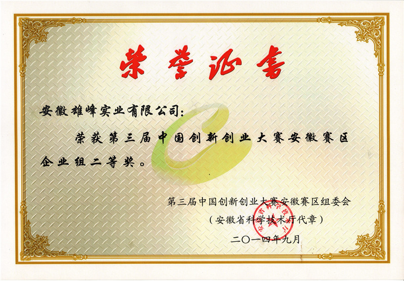 第三屆中國(guó)創(chuàng)新創(chuàng)業(yè)大賽獲獎(jiǎng)證書(shū)